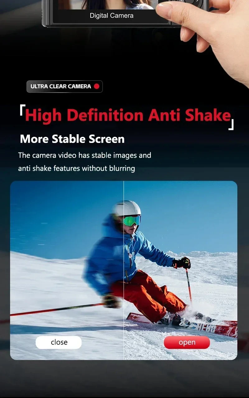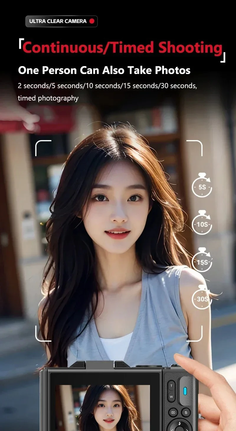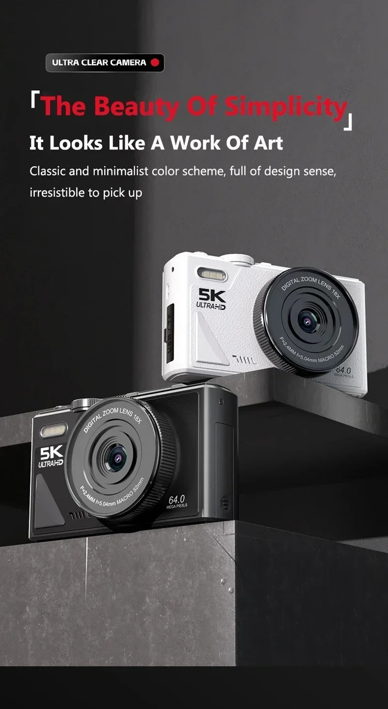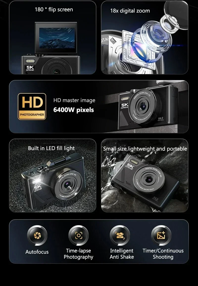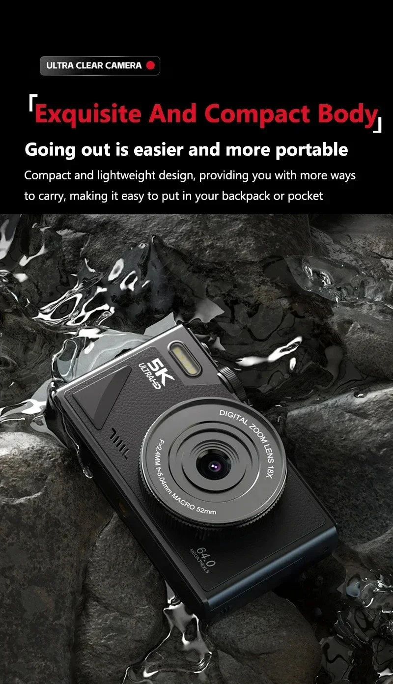 【Versatile 5K Point-and-Shoot Camera】The 5K digital camera has multiple functions, such as DIY panel, dual camera, continuous shooting, anti-shake, face capture and video pause functions help save editing time and memory, and time-lapse and slow motion functions can create the creativity you want!