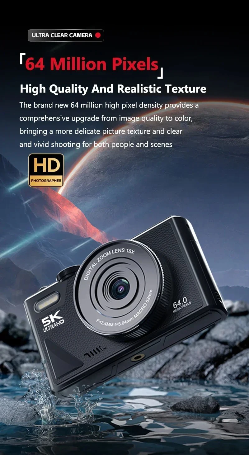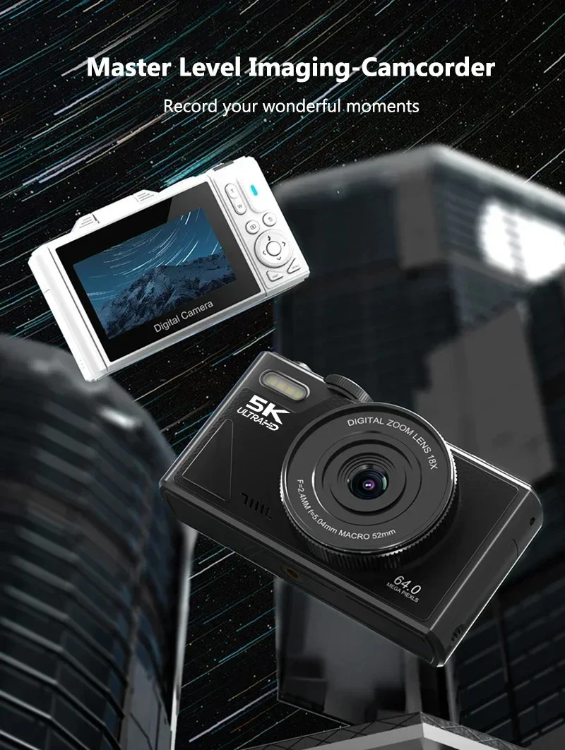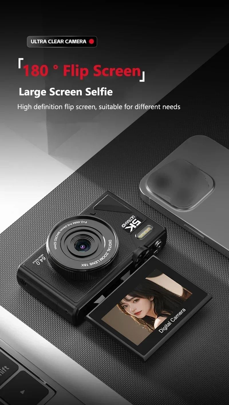 【64MP and 5K Digital Camera】This camera is equipped with a high-resolution 64-megapixel sensor to capture detailed images with rich colors and high contrast. This camera is equipped with a flip-up 3-inch IPS screen and 5K video resolution to smoothly produce stable high definition videos.