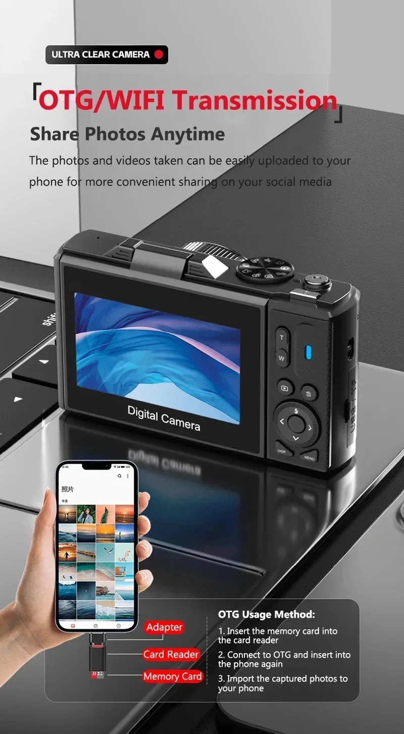 【Webcam and Video Blog】As a rechargeable video blog camera, it provides ease of use for live broadcasting and webcasting. Connect it to your PC with a USB data cable and you can enjoy video calls or live broadcasts on Tiktok, YouTube, Facebook or other social media platforms. The convenience of USB charging and file transfer and the webcam function make it suitable for digital cameras for photography, video blogging and social media sharing.