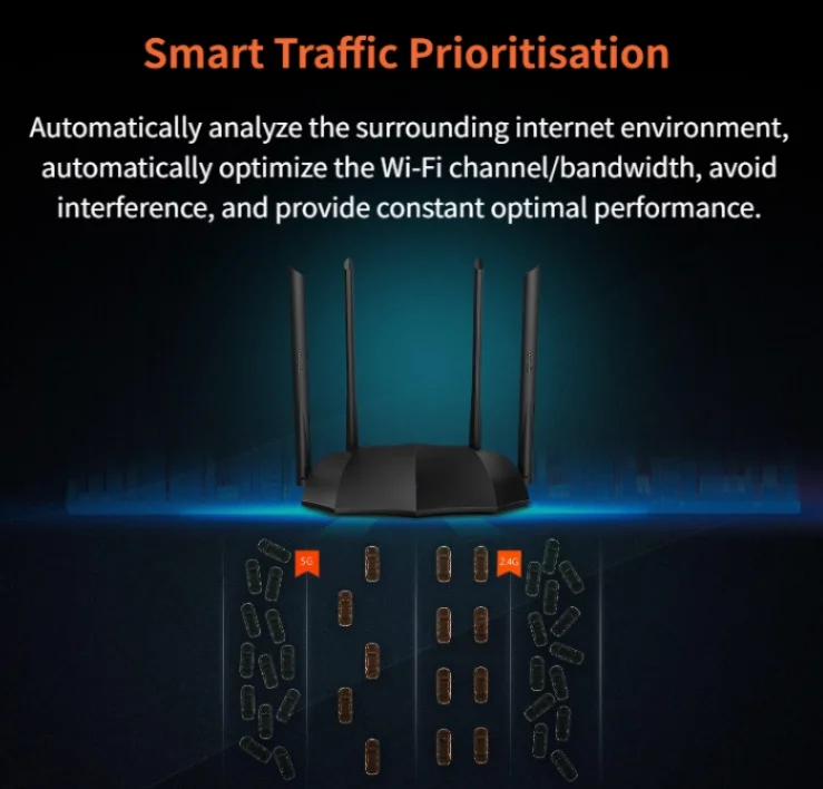 AC8 is a dual band gigabit wireless router specially designed for family with fibre access.Equipped with gigabit ports to support up to 1000 Mbps bandwidth access. The dual band provide 1167Mbps frequency, fully utilise the gigabit fibre.This router is equipped with 28nm 1 GHz CPU to provide better performance.